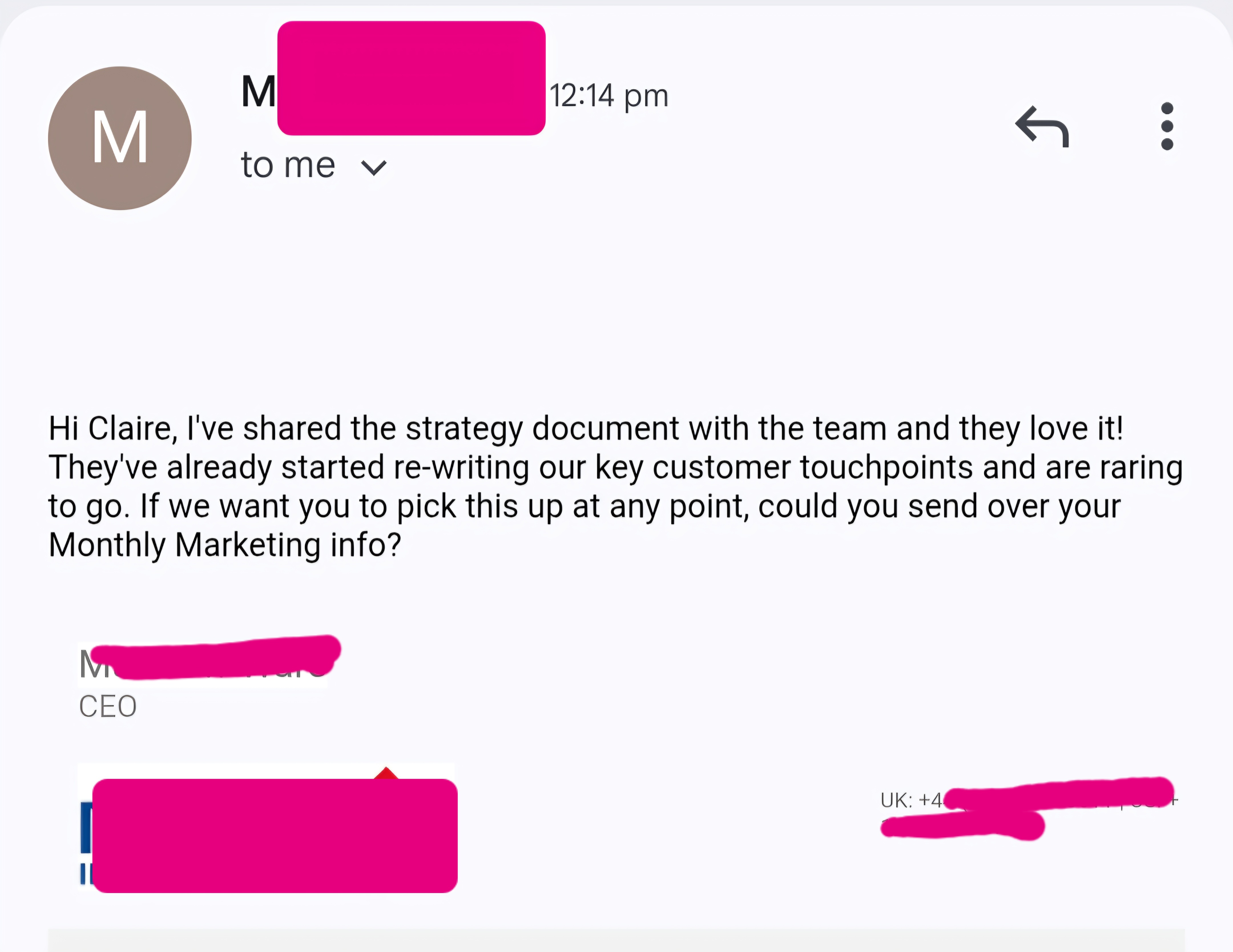 No retainer. No hidden extras. Just a smart, focused, detailed engagement document with a year of marketing confidence built in.